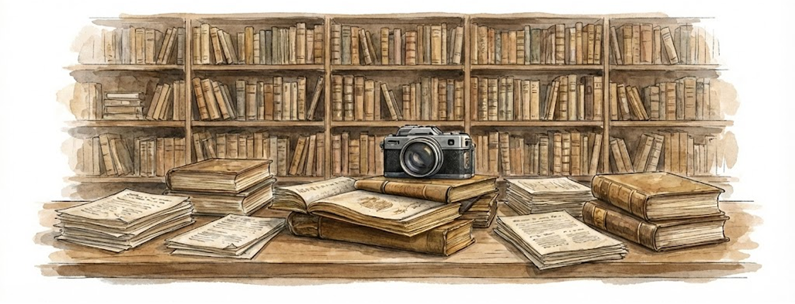 Documentos históricos digitalizados, fotografias e registros organizados para consulta pública.